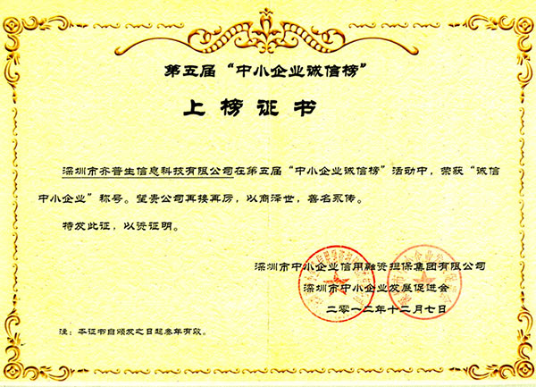 誠信中小企業(yè)證書