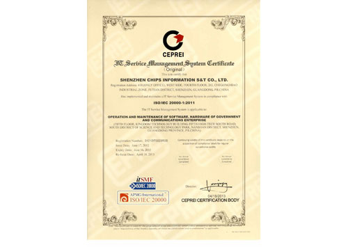 IT服務管理體系認證證書(英文)
