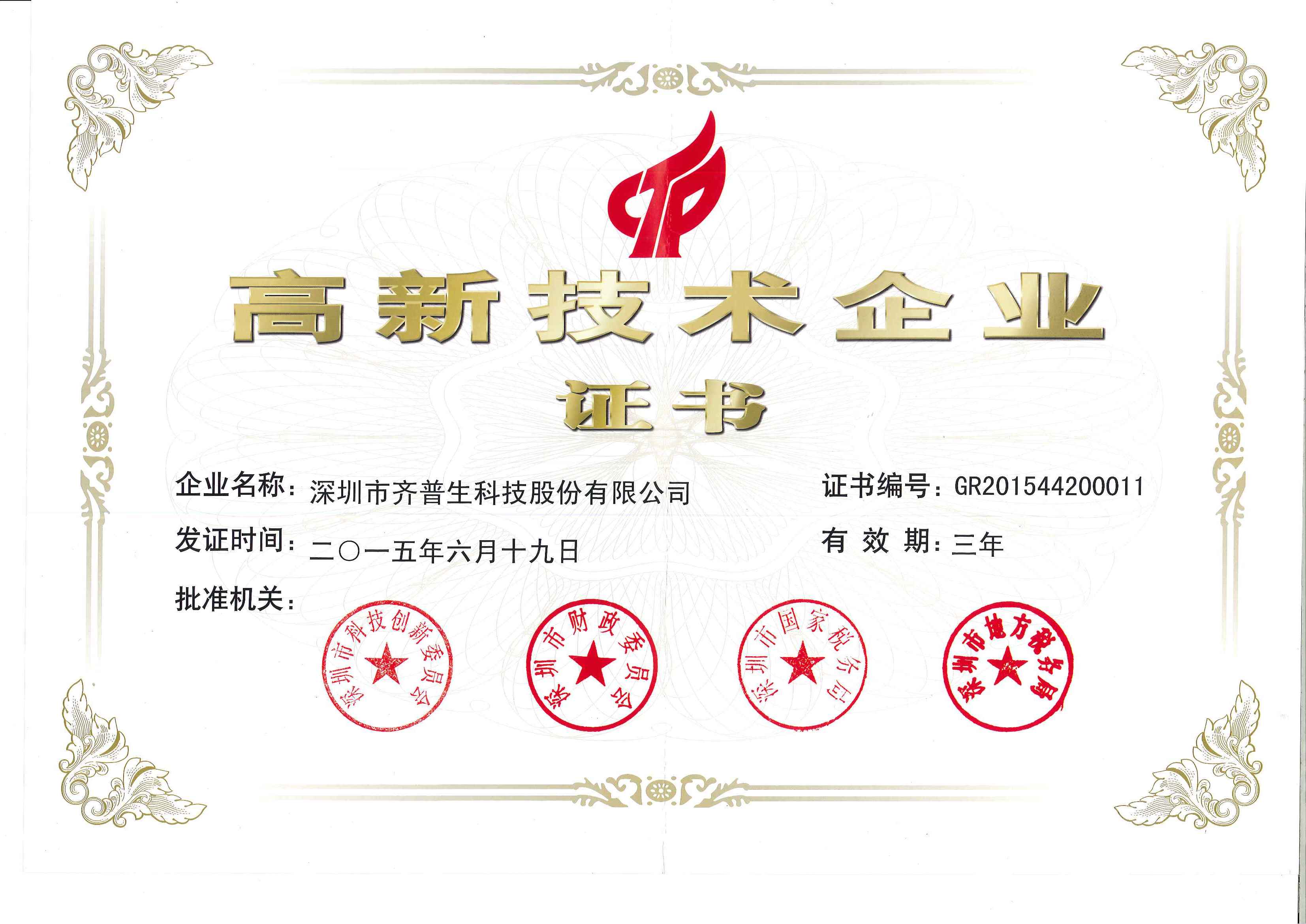 國家級高新技術企業(yè)證書
