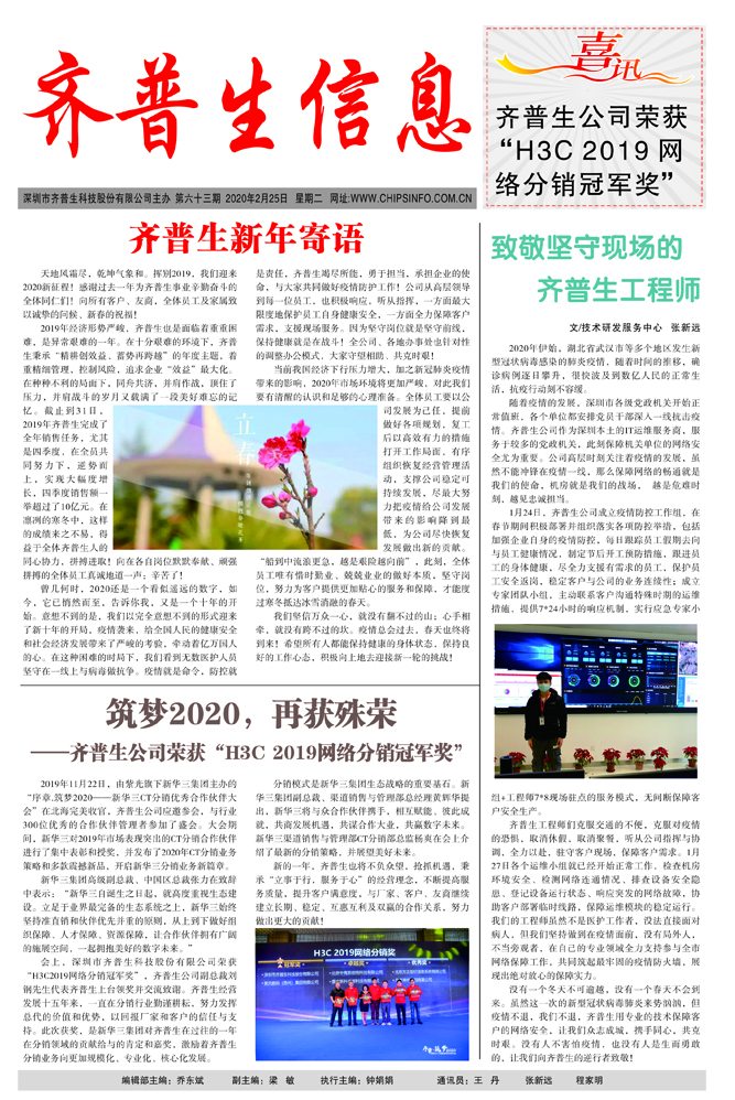 筑夢2020,再獲殊榮 ——齊普生公司榮獲“H3C2019網(wǎng)絡(luò)分銷冠軍獎(jiǎng)”
